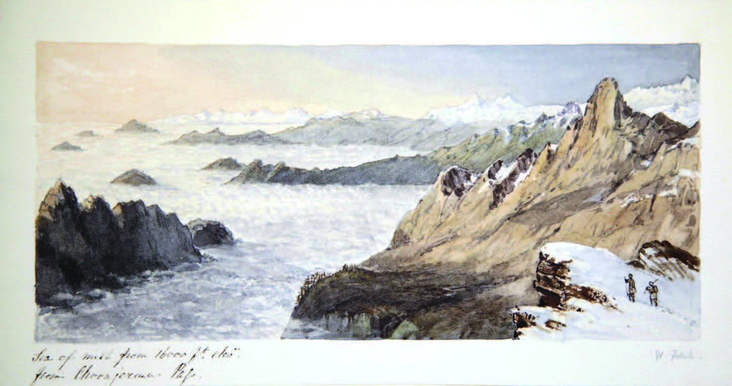Basándose en el esquema de Dalton Hooker, en 1850 Walter Hood Fitch pintaría una acuarela donde se podían apreciar mejor las distancias -y por tanto la altitud-, apreciándose en la lejanía el imponente grupo del Everest.