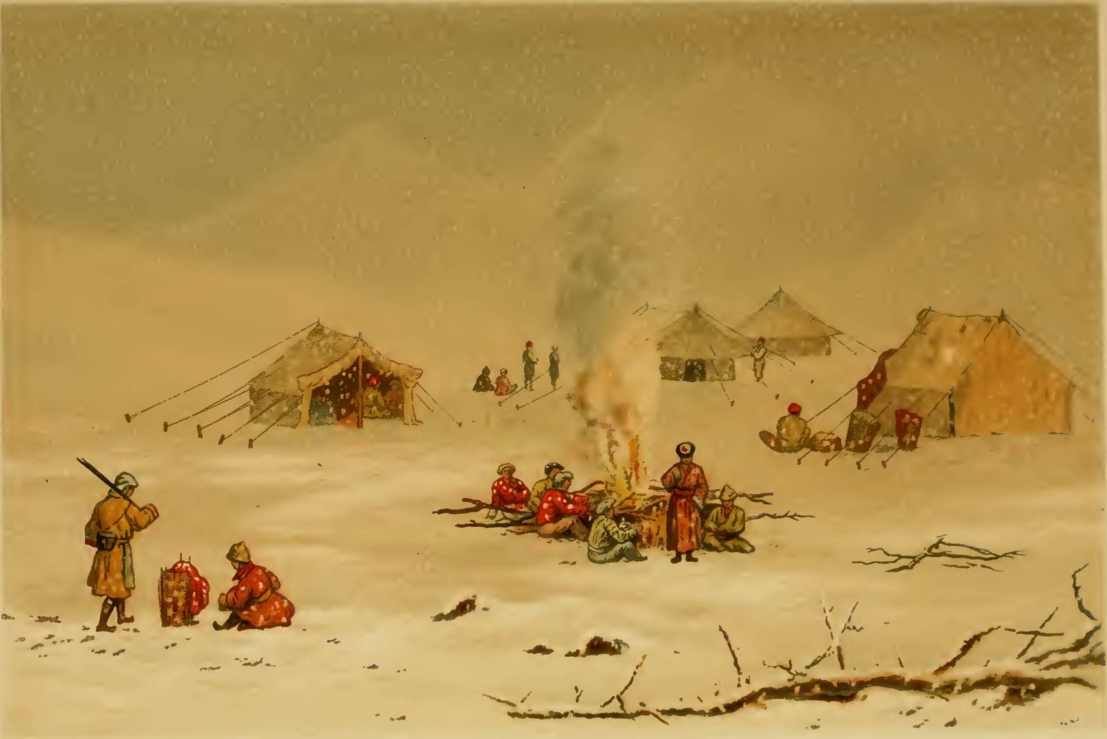 A falta de mapas fiables, iban por donde podían, entre matorrales, zonas tortuosas a las que se les añadía la persistente niebla que les obligó a acampar. En este entorno muchos porteadores querían dar la vuelta ante lo que se les avecinaba: el intenso frío: el glaciar.